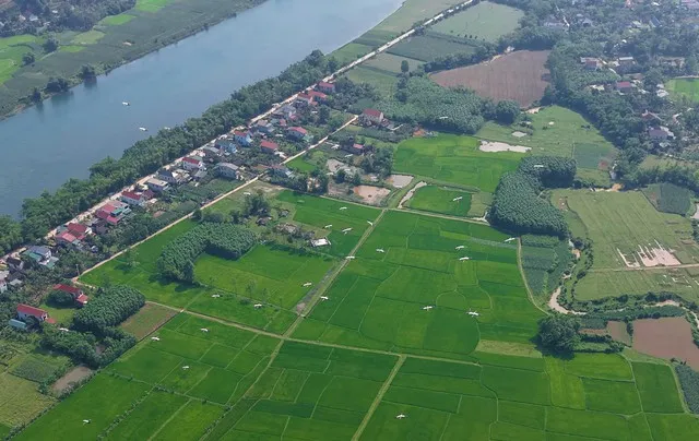 Hình ảnh đàn cò nhạn sà xuống cánh đồng của người dân ở thị trấn Phong Nha